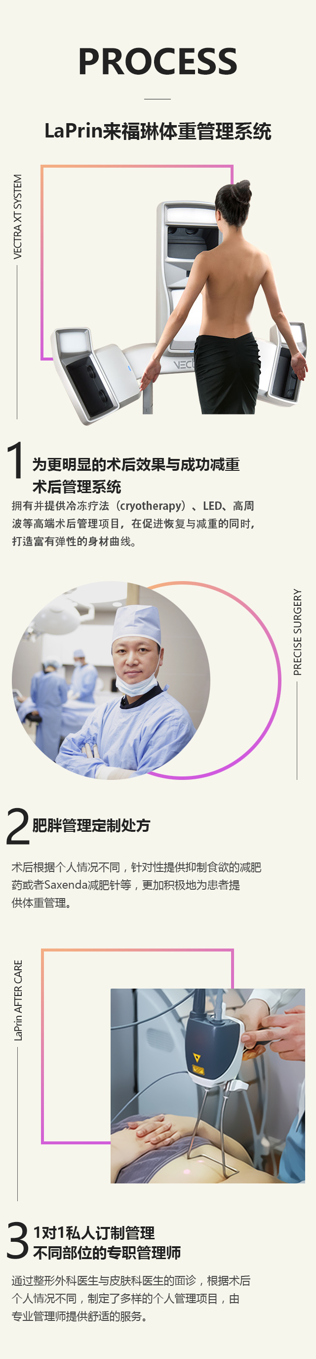 吸脂手术后的3个月里,如果管理体重将会影响到美丽的体态与术后效果。 LaPrin来福琳拥有岸上的术后护理与体重管理系统,为更加完美的术后效果提供优质的保障。