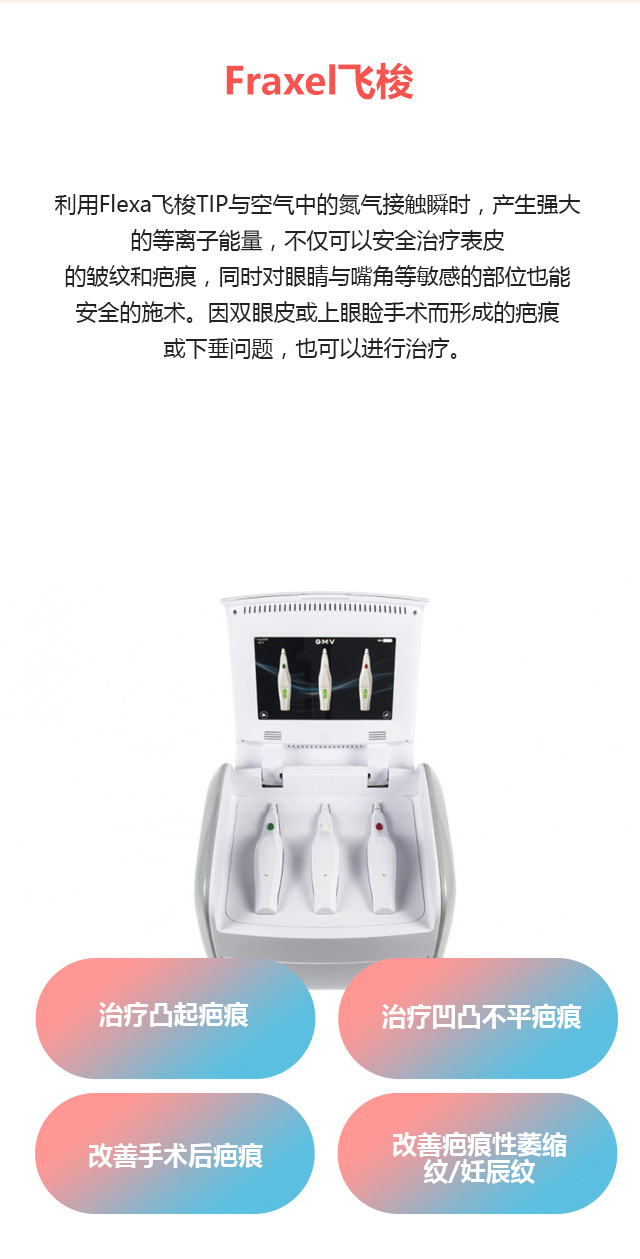 治疗凸起疤痕 / 治疗凹凸不平疤痕 / 改善手术后疤痕 / 改善疤痕性萎缩纹/妊辰纹