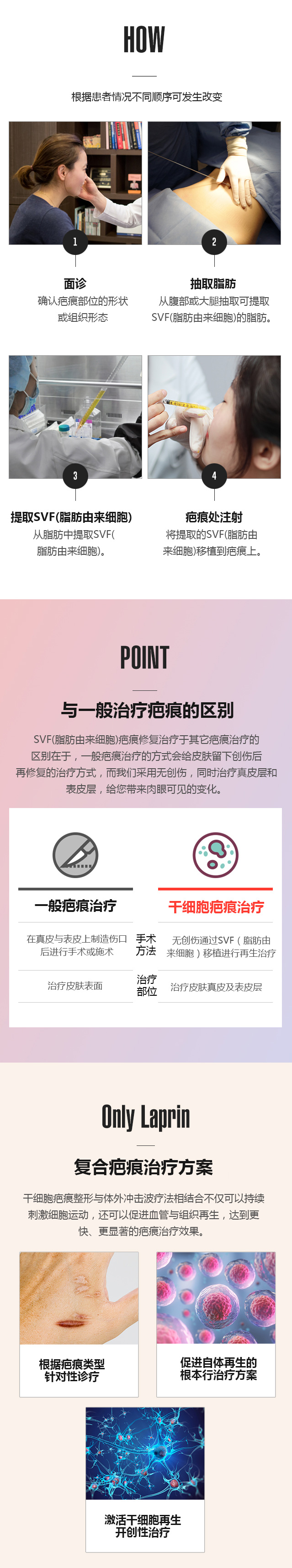 - 4. 疤痕处注射 - 将提取的SVF(脂肪由来细胞)移植到疤痕上.